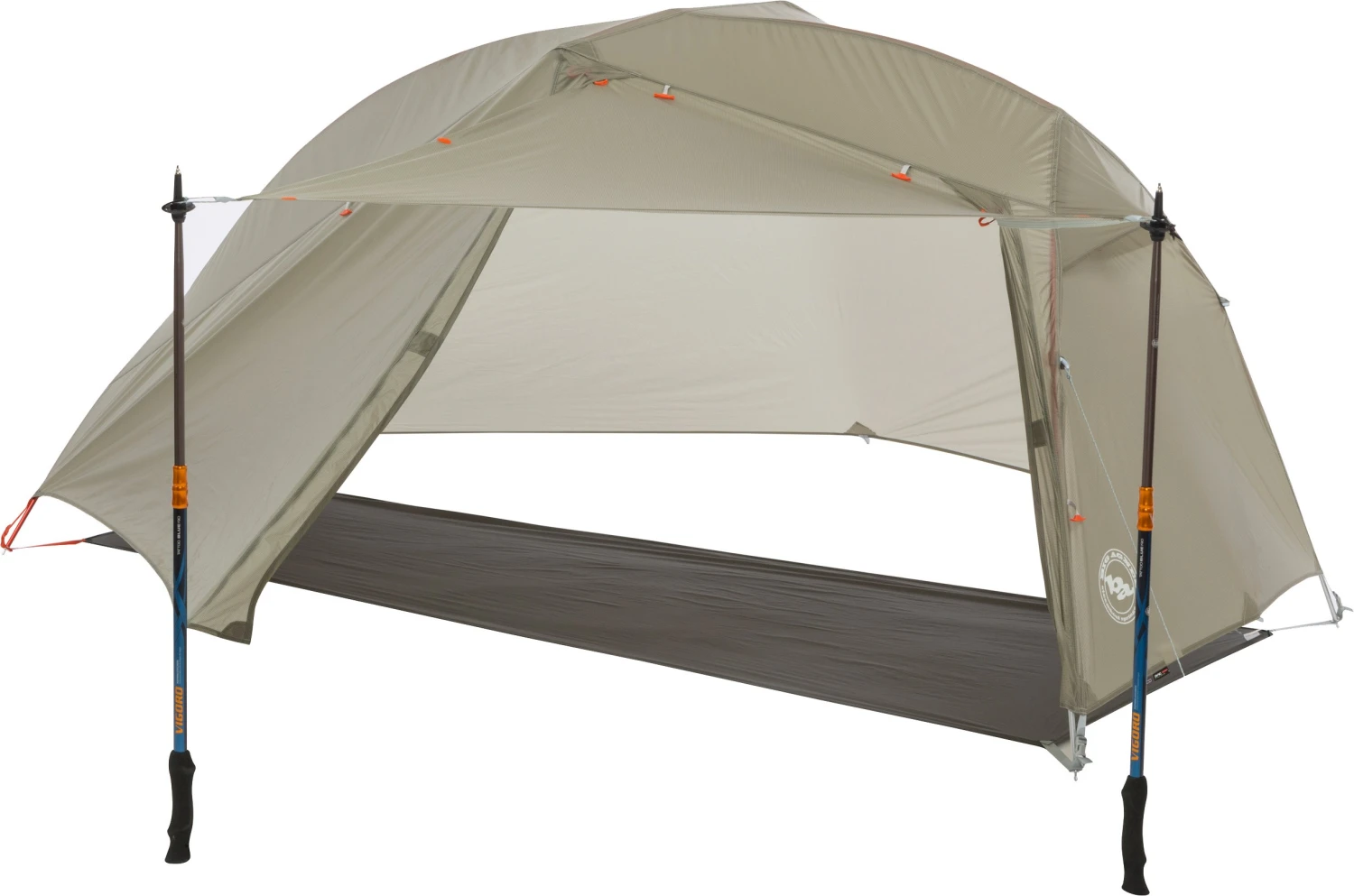 Big Agnes Copper Spur HV UL1 Tent entreres nemt og hurtigt gennem den store sideindgang med tovejs lynlås, hvor den rummelige apsis levner god plads til de medbragte udstyr. Inderteltet måler i hovedenden 97 cm. i bredden og i fodenden 71 cm, medens længden er 224 cm. og højden er op til hele 97 cm!