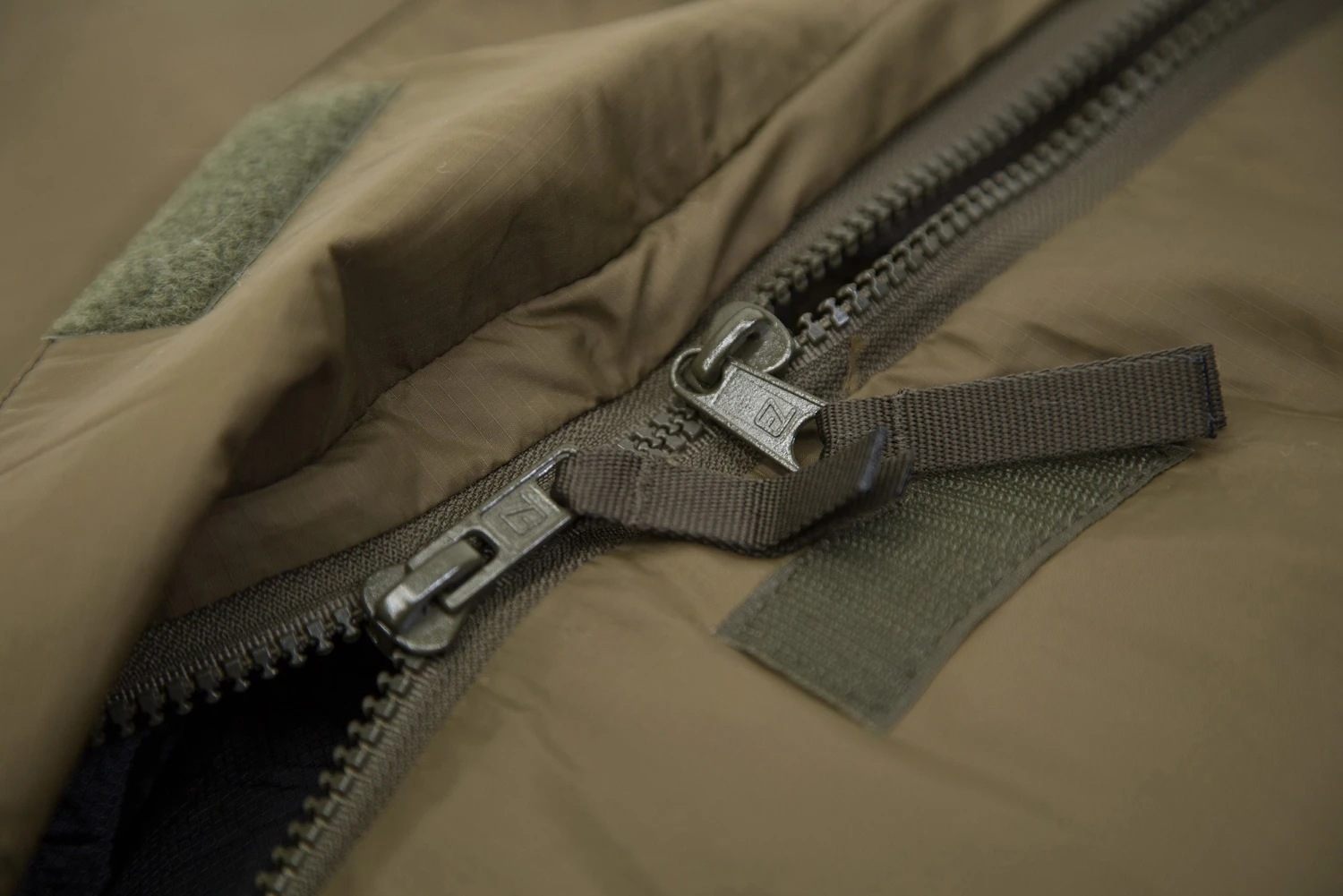 Defence 1 Top Medium, som passer personlængder op til ca. 185 cm, er skåret i en rummelig mumiefacon og foret med et enkelt lag af den enestående G-Loft® -fiber, som Carinthia selv har udviklet og er blevet så berømt for. Så berømt, at mange andre store producenter (fx Fjällräven) anvender G-Loft® som deres foretrukne fiberfyld i den forede beklædning og i de dyrere soveposer. For dels er denne spundne mikrofiber af polyester fantastisk blød og behagelig, men derudover er det givetvis det fiberfyld på markedet, der binder allermest isolerende luft i forhold til fyldmængden. Dertil kommer, at det er ekstremt hydrofobisk, så Carinthias soveposer også tåler det hårde liv i de åbne shelters, hvor de til tider netop udsættes for både vind og vand.