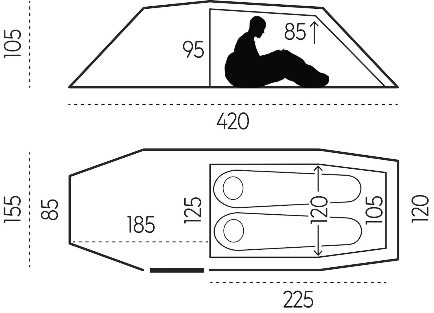 Den store sideåbning, som kan rulles mere eller mindre til siden og fikseres, giver gennem den gedigne YKK® -lynlås med automatisk lås adgang til den ekstra store apsis, hvori støvler, rygsække og andet kan opbevares i tørvejr, ligesom man – med stor forsigtighed – kan lave mad i teltåbningen. Og har man en ekstra overliggerdag pga. dårligt vejr kan inderteltet lynhurtigt løsnes og trækkes tilbage, så man har godt med plads under oversejlet. Alle spidsbelastningspunkterne omkring pløkfæsterne er naturligvis ekstra forstærket. De afstivede og regulerbare ventilskakter i begge ender justerer luftgennemstrømningen og det bagvedliggende myggenet ved såvel indgangsdør til inderteltet som ved ventilskakterne holder alt krybet ude.