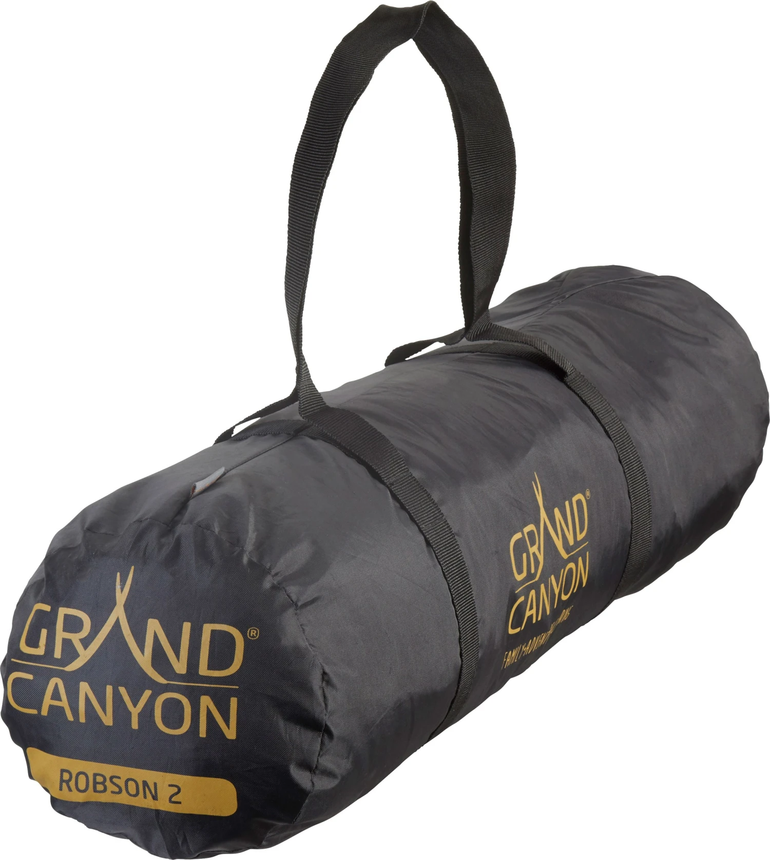 Robson 2 Tent fra Grand Canyon er således velegnet til mange former for friluftsliv som sommercamping eller cykel- og kanoture. Konstruktionen er helt klassisk for tunneltelt til to personer, dvs. to parallelle teltbuer. Bag den store frontdør findes nemlig en rummelig apsis til rygsække, støvler og til forsigtig madlavning i dårligt vejr. Denne åbning giver – sammen med ventilationsåbningerne i oversejlet – samtidig mulighed for masser af ventilation i teltet, så kondensdannelsen minimeres.
