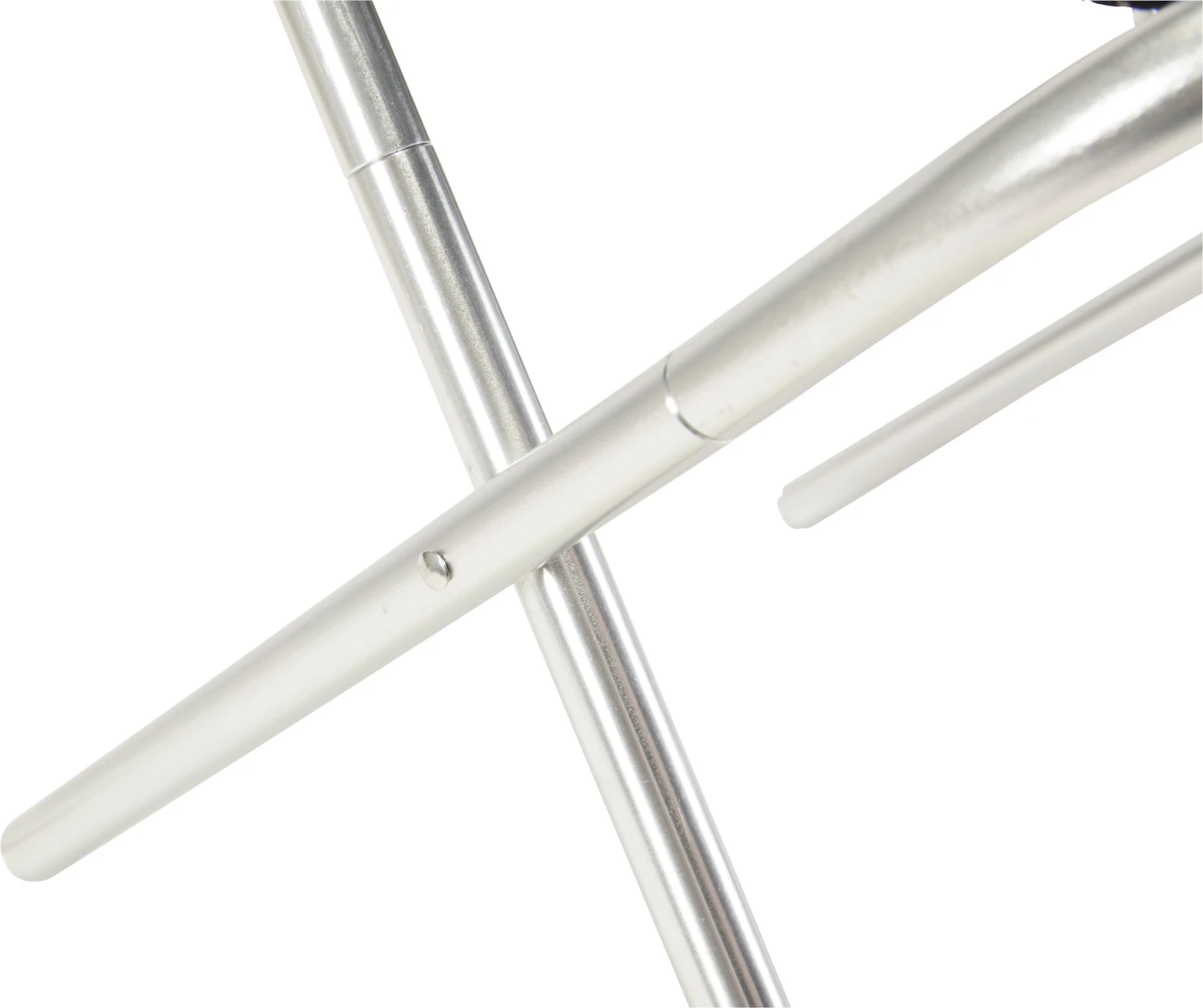 Sædets forstærkninger af robust Oxford Polyester og de foldbare ben af anodiseret aluminium er testet og godkendt op til 100 kg. og stolen leveres i praktisk pakkepose.
