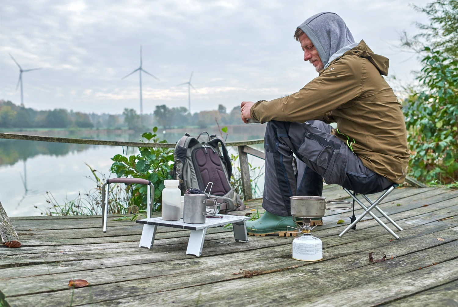 Men brug også Tucket Table Micro til at placere dit kogegrej eller din campinglygte på, så det står stabilt og i sikker afstand fra jorden.