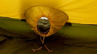 En justerbar tophat i myggenet medfølger, og på de varme nætter kan der således, med begge ventilskakter og yderdøren åben, virkelig pumpes noget frisk luft gennem teltet.