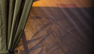 Døråbningen har to kraftige lynlåse af YKK® -typen, og bag hoveddøren, er Varanger udstyret med fintmasket myggenet, ligeledes i flammehæmmende materiale, der også åbnes med stærke YKK® -lynlåse.
