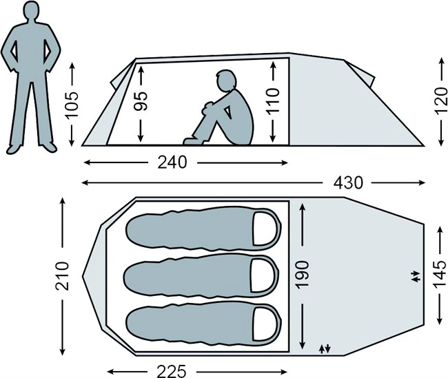 Oppland 3 LW rejses nemt og hurtigt ved hjælp af tre DAC Featherlite® NFL™ -stænger i anodiseret letvægtsaluminium, som føres gennem de skjulte løbegange. Oversejlet, som er stærkt medvirkende til teltets uhørt lave vægt, er af en blot 10 Denier Nylon Ripstop, der er silikonebelagt på begge sider (dobbelt udvendigt og en enkelt gang indvendigt) for at øge rivstyrken og den generelle vandtæthed. Materialet vejer kun 30 gram/m2 og modstår et konstant vandsøjletryk på >2.000 m2, hvilket er alt, alt rigeligt! For når et materiale (jf. DIN-normen) modstår et vandsøjletryk på over 1.200 mm. er det at betragte som værende 100% vandtæt. Og nogle billige telte kan måske honorere dette – i hvert fald som nye – men erfaringen viser, at efter kort tids brug, vil de billige tekstiler hurtigt miste deres vandtætte egenskaber pga. det ringe materialevalg og den dårlige belægning af materialet.