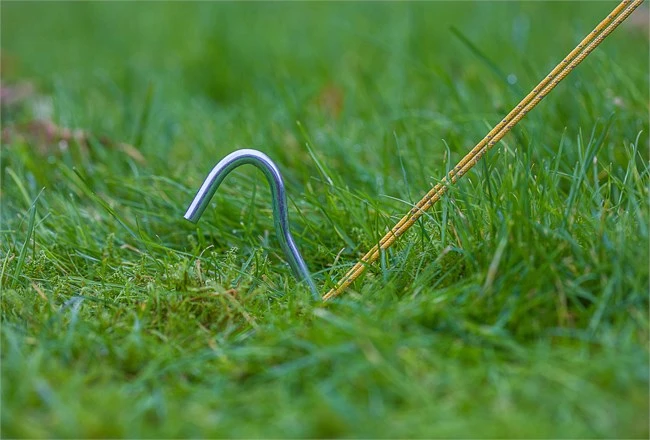 Den store krog øverst holder fast i bardunen og gør samtidig pløkken nem at trække fri. Galvaniseringen får pløkken til at glide lettere i jorden, ligesom det gør pløkkerne nemmere at rengøre.