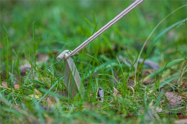 Disse solide pløkker er perfekte i sandet og lidt blødere underlag, når det store telt skal holdes fast. Bardunen er nem at fæstne omkring de to arme på hovedet på pløkken.