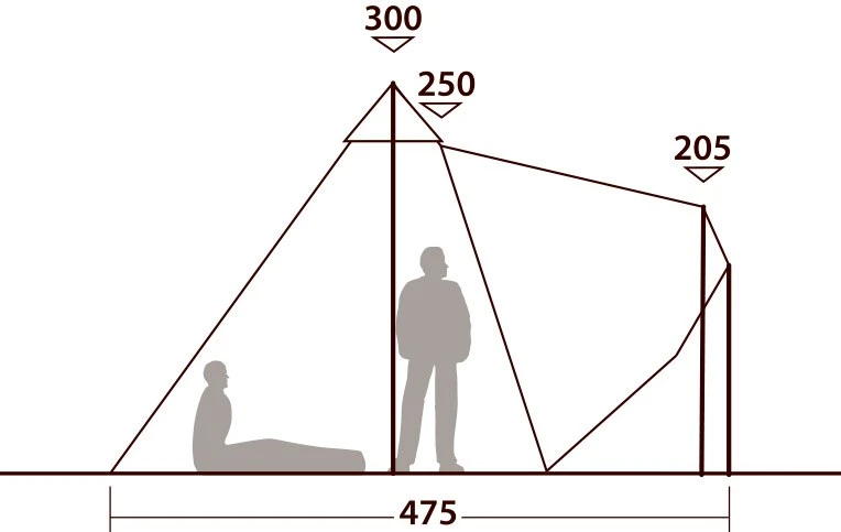 Robens Chinook Ursa 8 PRS Tipi, som har en totalvægt på beskedne 14 kg, har en udvendig diameter på 425 cm. (475 cm, når indgangspartiet er løftet op) og højden er hele 300 cm, så der er god plads til 8 voksne eller fx 6 voksne og 4 børn. Teltet er meget nemt og hurtigt at rejse vha. af den særlige midterstang af anodiseret aluminium og så den afstivende ramme ved indgangsdøren, der monteres efterfølgende. De regulerbare ventilskakter, myggenettet bag døren og den regulerbare tophat (kaldet Internal Apex™ Air Control, som med et genialt snoretræk styres indefra) sikrer den helt rigtige luftgennemstrømning og et sublimt klima i teltet. Og så kan bardunerne på teltdugen fikst bundtes op og samles i de til formålet fastgjorte løkker, så man dels slipper for kludder i alle bardunerne, når teltet pakkes ud, og dels undgår de flagrende barduner, hvis ikke alle lige er i brug – endnu en virkelig gennemtænkt detalje!