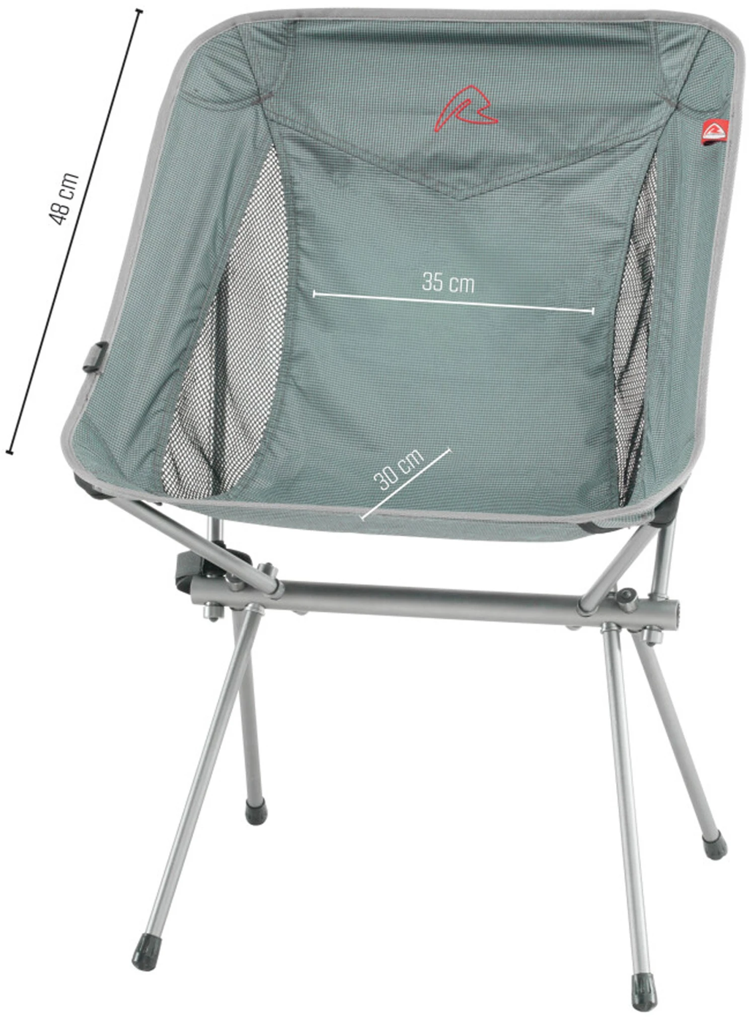 Sædehøjden er 46 cm. og udslået måler stolen 57 x 50 x 84 cm. (B x D x H), medens den sammenpakket i den medfølgende transporttaske blot fylder 47 x 12 x 10 cm. Fastgør evt. transporttasken til stolen, når den er i brug, og du har en praktisk opbevaringslomme.