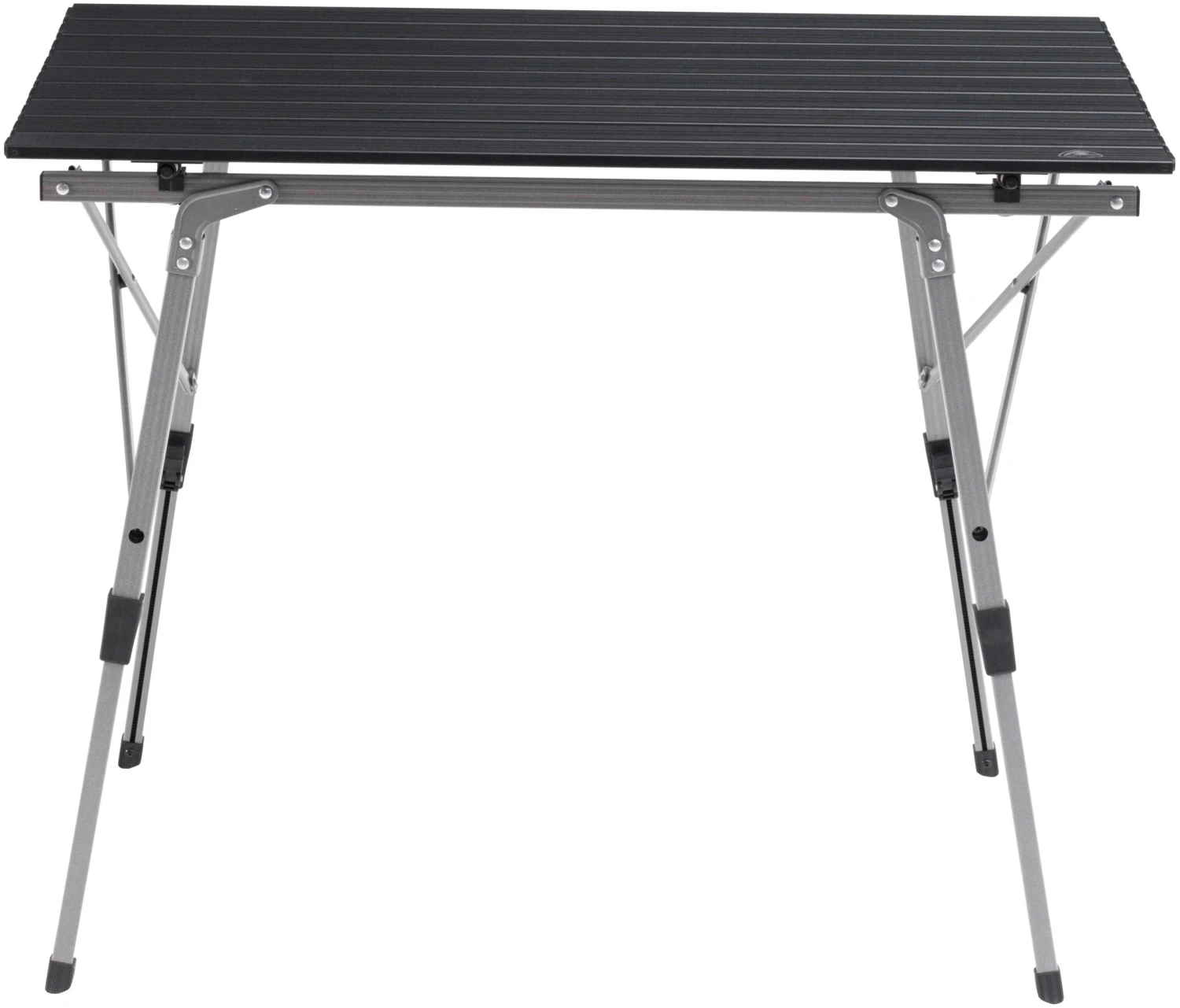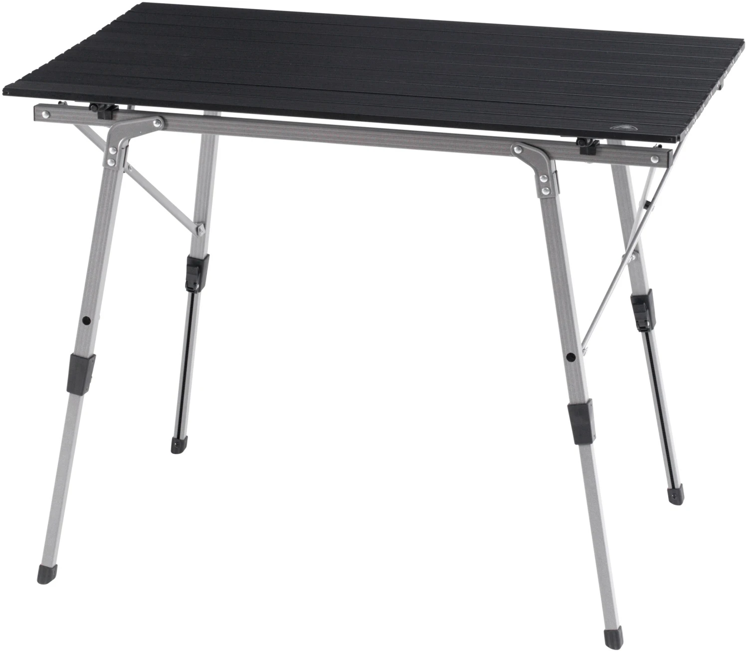 Bordbenene er lavet med skridsikre fødder og er desuden teleskopiske, så man kan justere bordets højde, men da benene justeres individuelt, sikrer man sig også, at bordet kan stå stabilt i mere ujævnt terræn.