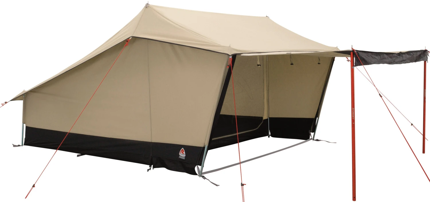 Dette rummelige Robens Yukon Shelter levner med sin kabinebredde på 245 cm. og dybde på 220 cm. rigtig god plads til fire voksne. Den fastmonterede bund og myggenetspanelerne ved både indgangsdøren og i bagenden af shelteret (som kan lukkes af, hvis vejret viser tænder) holder alt det irriterende kryb ude, og virkelig smart er det alsidige vægpanel foran indgangen, for dette panel kan enten rulles op og fikseres, hvis udsigten skal nydes, rulles ned og lynes fast, hvis man ønsker lidt privatliv eller ekstra beskyttelse mod regn og vind, eller også kan det løftes op og ved hjælp af et par passende tarpstænger eller et par tilpassede kæppe fungere som et ekstra stort og overdækket udeareal foran shelteret.