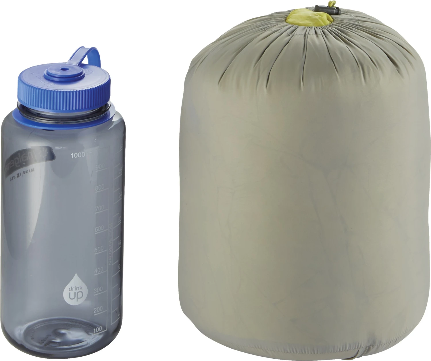 Therm-A-Rest® Corus™ 32F/0C Quilt Long har en nedre komforttemperatur alene på ca. 5˚C og vejer blot 610 gram, hvoraf dunfyldet udgør det 370 gram. Og så fylder den i sammenpakket stand i den medfølgende kompressionspose kun 17 x 25 cm.