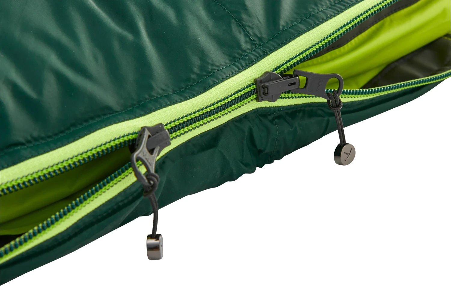 Tension-serien er ligesom Y by Nordisk’ øvrige dunsoveposer skåret rigtig, rigtig godt. Tension-serien er konstrueret en tilpas rummelig omkring overkroppen, er fremstillet af superlækre materialer og fyldt med den lækreste, hvide (certificerede) gåsedun, kaldet Crystal Down™, som er sammensat af 90% dun og blot 10% småfjer, der tilsammen har et flot løft på hele 600+ cuin. Og her skal man lige have in mente, at den europæiske standard altså er en tand hårdere end den amerikanske, da den svarer til et løft på minimum 660 cuin iht. US-standarden!