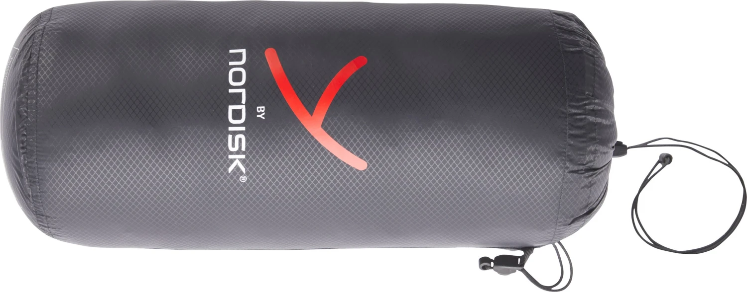 Sammensat gør det fine materialevalg, at Y by Nordisk Tension Mummy 300 Medium ikke fylder mere end ca. 28 x 16 cm. i sammenpakket stand.